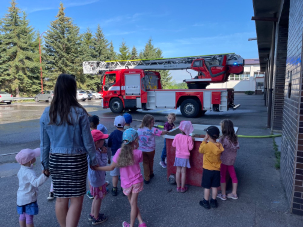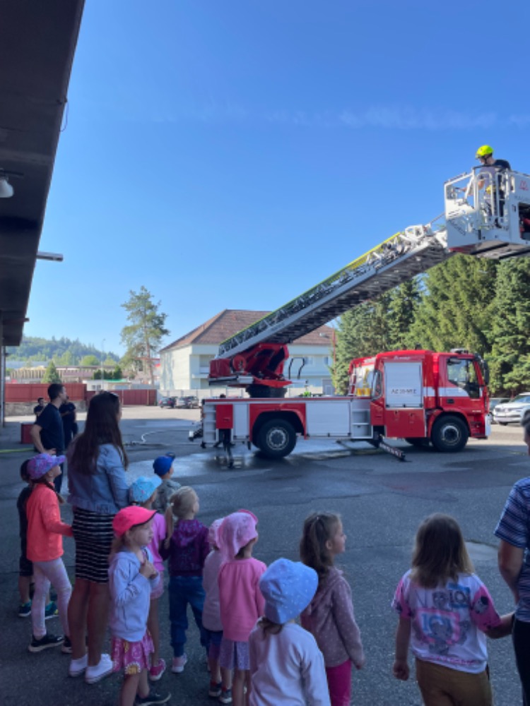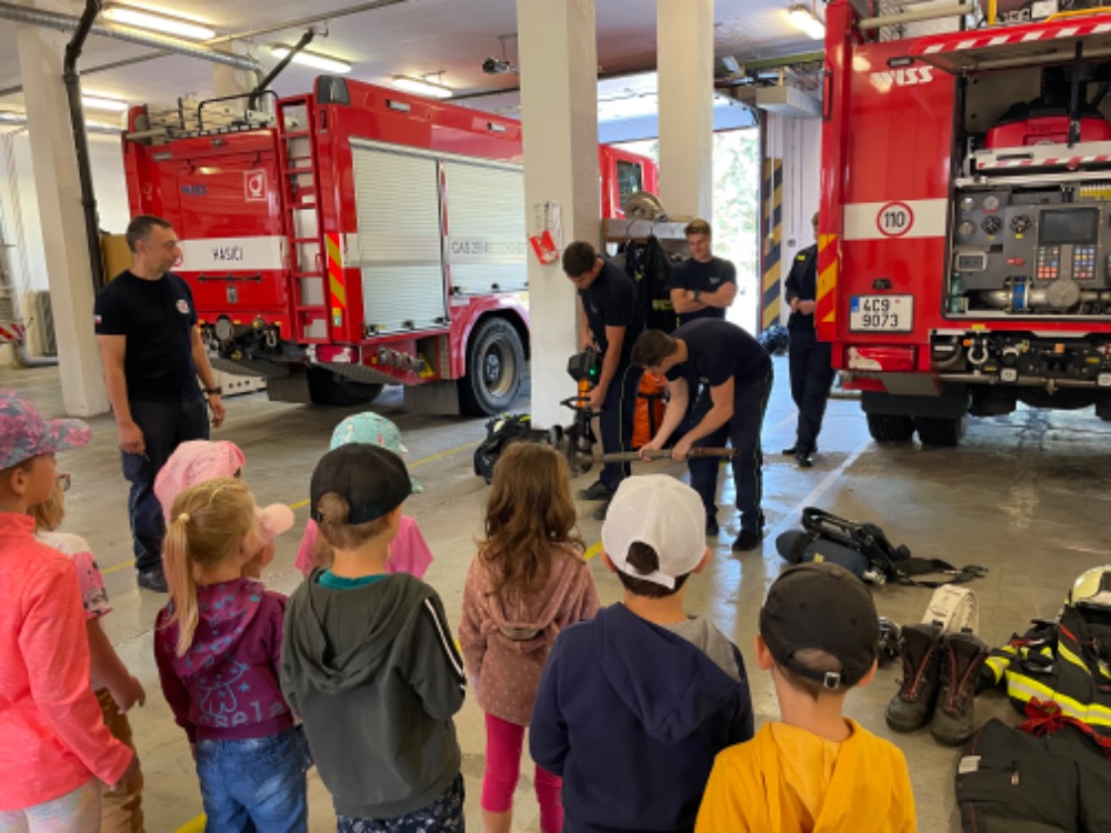 Dne 24.6.2024 měly děti možnost navštívit hasičskou stanici města Písek. Profesionální hasiči pro děti připravili program, při kterém se děti seznámily s jejich technikou, automobily a nakonec si vyzkoušely hašení vodou.