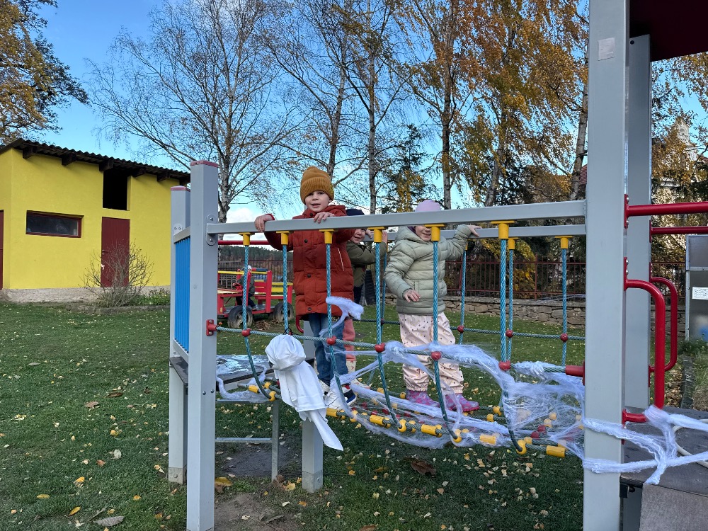 Dne 30.10.2025 jsme byli pozváni do MŠ Čížová na halloweenské překvapení. Děti plnily "strašidelné" aktivity na školní zahradě, měly něco dobrého na zub a nakonec hledaly poklad. Moc děkujeme za tak krásný program!